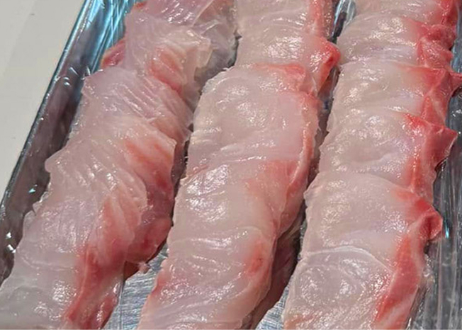 他の三枚おろしはお腹がえぐれている、背中の身を剥いでいるのが目立つ。それを防ぐための練習中。
